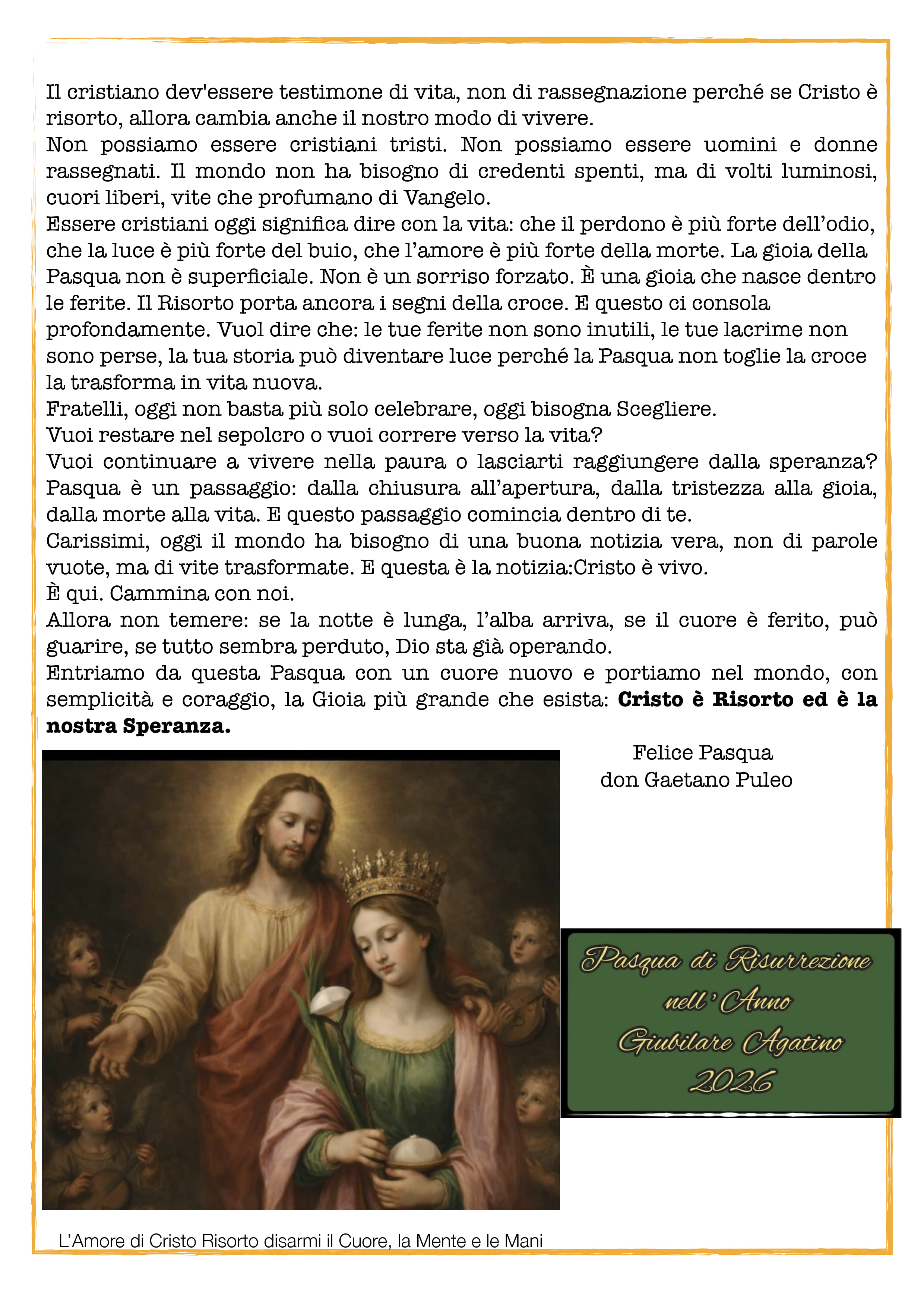 Il mondo non ha bisogno di cristiani perfetti ma ha bisogno di cristiani Risorti.