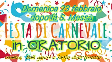 I ragazzi della parrocchia sono invitati a partecipare alla festa in maschera organizzata dagli animatori dell'oratorio, subito dopo la conclusione della Santa Messa delle ore 10:30.